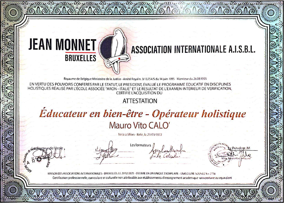 Attestation di Naturopata Evolutivo in BioPsicoQuantistica® rilasciata dall’Association Jean Monnet, valida in tutta Europa.